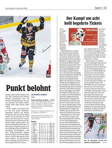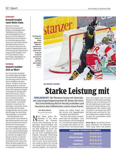 Spielbericht. Die Pioneers boten mit einer klaren Leistungssteigerung dem HC Bozen die Stirn. Die Entscheidung fiel im Penaltyschießen und bescherte den Feldkirchern somit einen Punkt.
