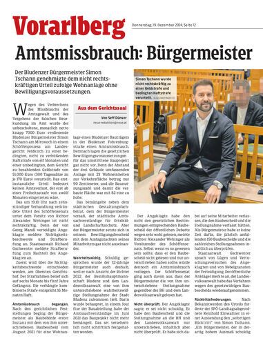 Der Bludenzer Bürgermeister Simon Tschann genehmigte dem nicht rechtskräftigen Urteil zufolge Wohnanlage ohne Bewilligungsvoraussetzungen.