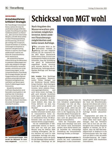 Nach Angaben des Masseverwalters gibt es keinen möglichen Investor, keine anderen Finanzierungsmöglichkeiten und keine neuen Aufträge.