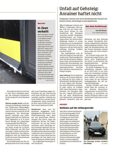 Fußgänger verletzte sich durch überhängenden Strauch mit Dornen schwer. Seine Klage wurde abgewiesen.
