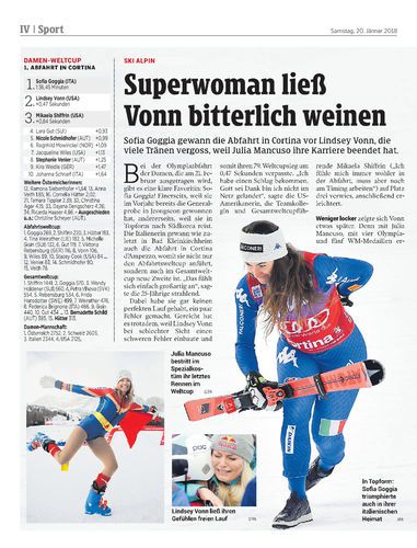Sofia Goggia gewann die Abfahrt in Cortina vor Lindsey Vonn, die viele Tränen vergoss, weil Julia Mancuso ihre Karriere beendet hat.