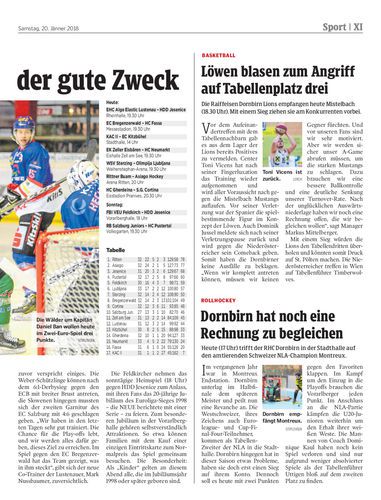 Die Raiffeisen Dornbirn Lions empfangen heute Mistelbach (18.30 Uhr). Mit einem Sieg ziehen sie am Konkurrenten vorbei.
