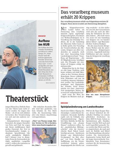 Das vorarlberg museum erhält von Krippenbauvereinen 20 Krippen. Neun davon wurden am Donnerstag übergeben.