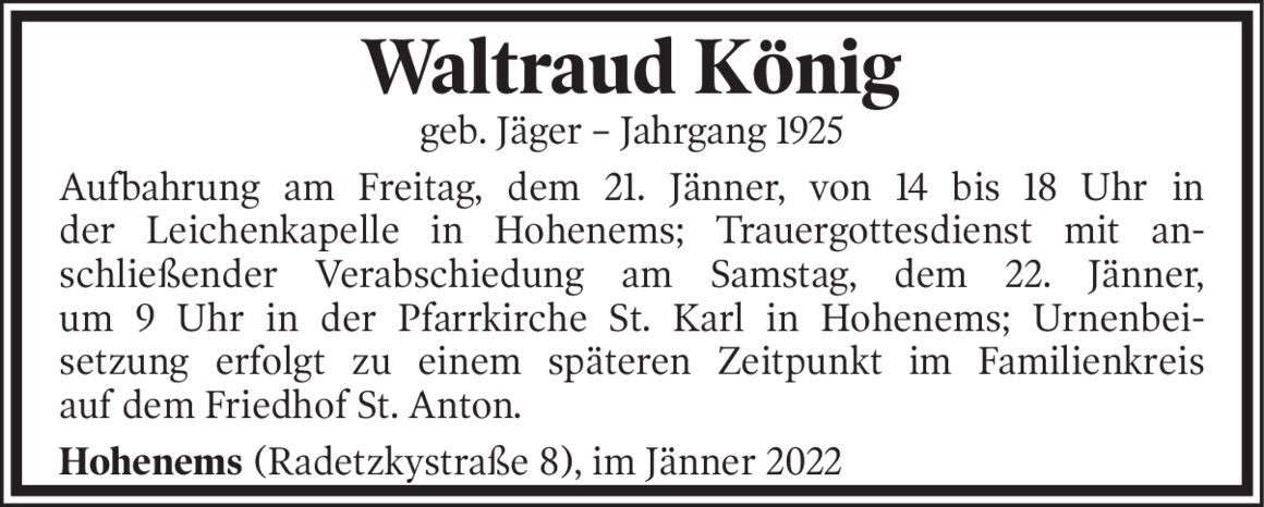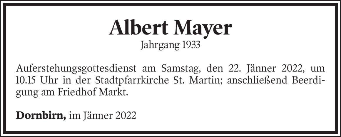 Der 85-Jährige starb Mittwochfrüh im LKH Feldkirch.