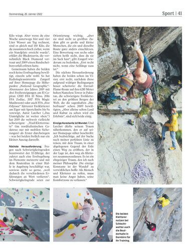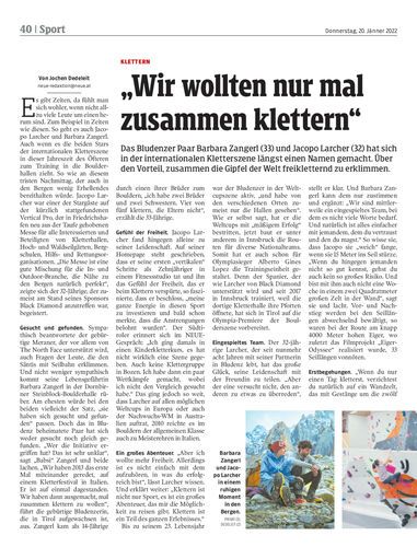 Das Bludenzer Paar Barbara Zangerl (33) und Jacopo Larcher (32) hat sich in der internationalen Kletterszene längst einen Namen gemacht. Über den Vorteil, zusammen die Gipfel der Welt freikletternd zu erklimmen.