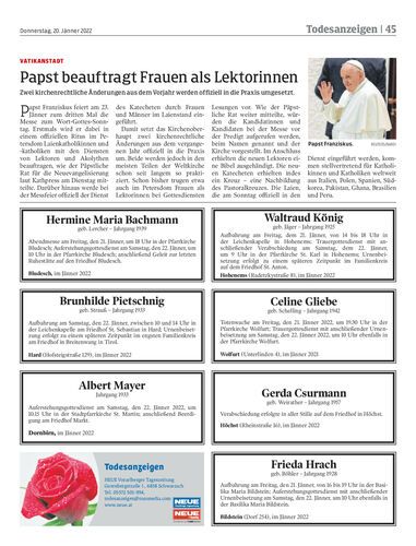 Papst beauftragt Frauen als Lektorinnen