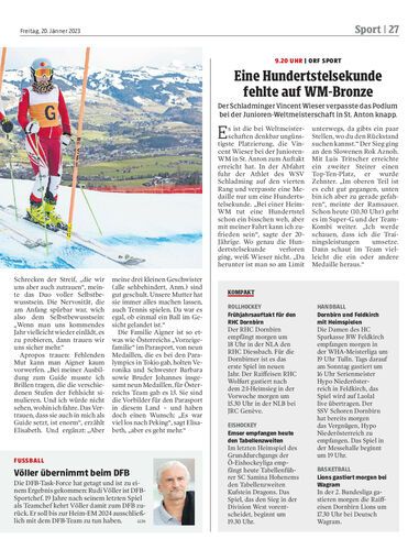 Der Schladminger Vincent Wieser verpasste das Podium bei der Junioren-Weltmeisterschaft in St. Anton knapp.
