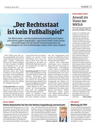 Die Wirtschafts- und Korruptionsstaatsanwaltschaft spiele „kein Match gegen Angeklagte“, sagt deren Chefin Vrabl-Sanda. Verschärfungen bei der Handy-Auswertung lehnt die Chefanklägerin ab, viele Enthüllungen wären nicht mehr möglich.
