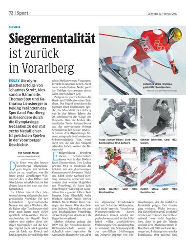 Essay. Die olympischen Erfolge von Johannes Strolz, Alessandro Hämmerle, Thomas Steu und Katharina Liensberger in Peking verändern das Sportland Vorarlberg, insbesondere durch die Olympiasiege. Gedanken zu den mit sechs Medaillen erfolgreichsten Spielen in der Vorarlberger Geschichte.