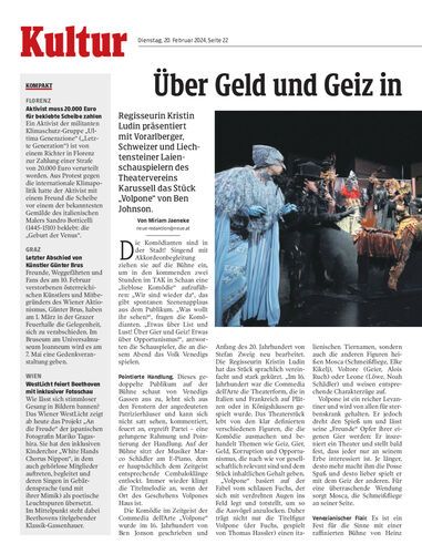 Regisseurin Kristin Ludin präsentiert mit Vorarlberger, Schweizer und Liechtensteiner Laienschauspielern des Theatervereins Karussell das Stück „Volpone“ von Ben Johnson.