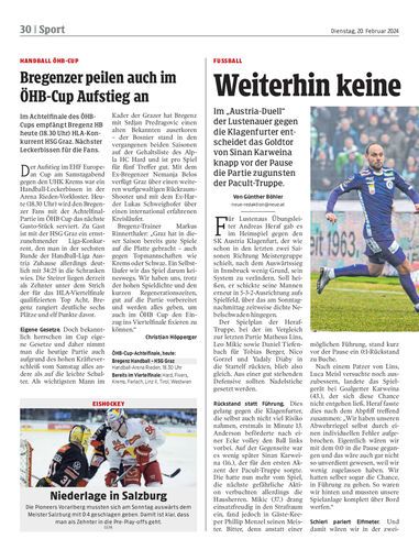 Im Achtelfinale des ÖHB-Cups empfängt Bregenz HB heute (18.30 Uhr) HLA-Konkurrent HSG Graz. Nächster Leckerbissen für die Fans.