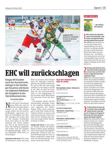 Knapp 48 Stunden nach der Auswärtsniederlage in der Salzburger Eisarena soll heute vor eigenem Publikum der Ausgleich in der Viertelfinalserie her.