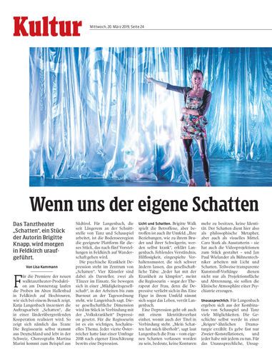 Das Tanztheater „Schatten“, ein Stück der Autorin Brigitte Knapp, wird morgen in Feldkirch uraufgeführt.