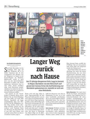 Der 27-jährige Bregenzer Felix Jagg ist derzeit in Nepal. Nachdem von der Botschaft aufgrund der Corona-Krise die Aufforderung zur Rückkehr gekommen ist, bemüht er sich um eine Heimkehr.