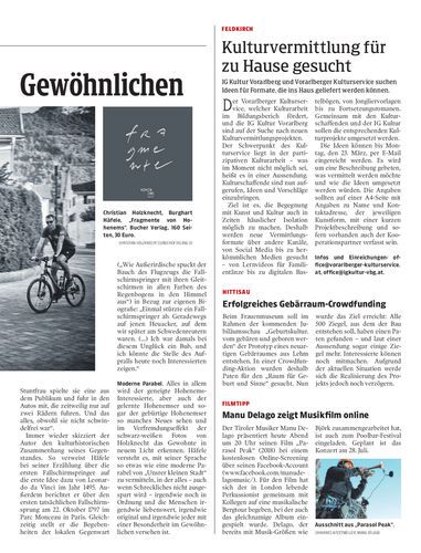 IG Kultur Vorarlberg und Vorarlberger Kulturservice suchen Ideen für Formate, die ins Haus geliefert werden können.