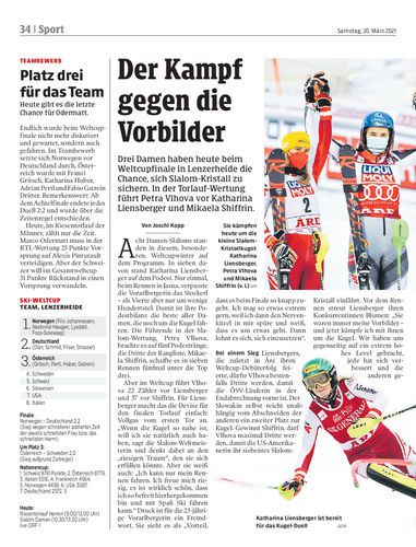Drei Damen haben heute beim Weltcupfinale in Lenzerheide die Chance, sich Slalom-Kristall zu sichern. In der Torlauf-Wertung führt Petra Vlhova vor Katharina Liensberger und Mikaela Shiffrin.