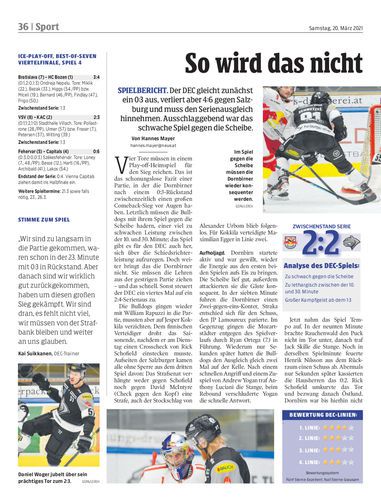 Spielbericht. Der DEC gleicht zunächst ein 0:3 aus, verliert aber 4:6 gegen Salzburg und muss den Serienausgleich hinnehmen. Ausschlaggebend war das schwache Spiel gegen die Scheibe.