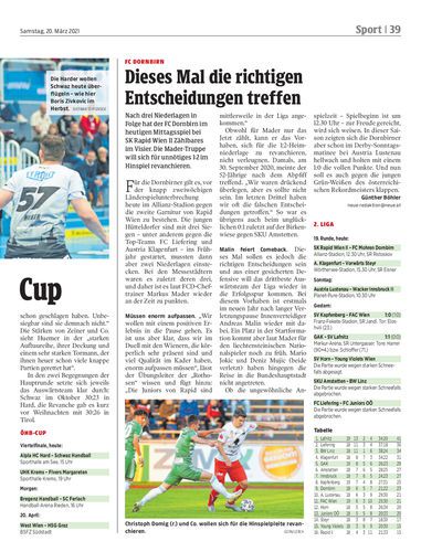 Nach drei Niederlagen in Folge hat der FC Dornbirn im heutigen Mittagsspiel bei SK Rapid Wien II Zählbares im Visier. Die Mader-Truppe will sich für unnötiges 1:2 im Hinspiel revanchieren.