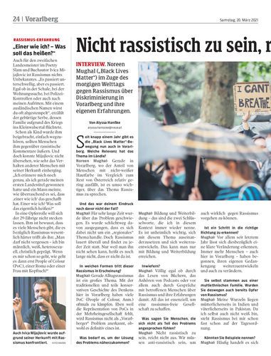 Interview. Noreen Mughal („Black Lives Matter“) im Zuge des morgigen Welttags gegen Rassismus über Diskriminierung in Vorarlberg und ihre