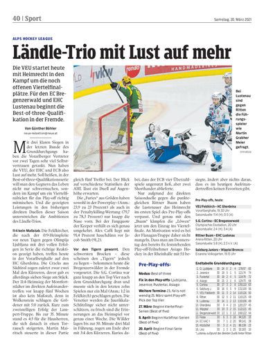 Die VEU startet heute mit Heimrecht in den Kampf um die noch offenen Viertelfinalplätze. Für den EC Bregenzerwald und EHC Lustenau beginnt die Best-of-three-Qualifikation in der Fremde.