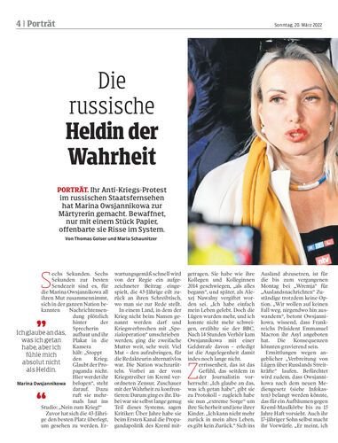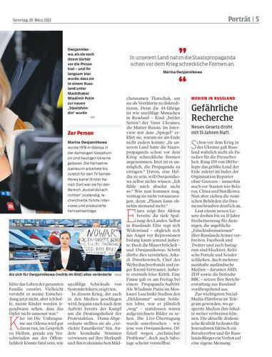 Porträt. Ihr Anti-Kriegs-Protest im russischen Staatsfernsehen hat Marina Owsjannikowa zur Märtyrerin gemacht. Bewaffnet, nur mit einem Stück Papier, offenbarte sie Risse im System. Von Thomas Golser und Maria Schaunitzer