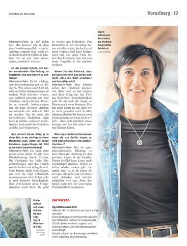 Interview. Die Psychotherapeutin Sigrid Hämmerle-Fehr erläutert, was die Kriegsbilder mit unserer Psyche machen, welche Ängste und Sorgen sie auslösen und wie man sie Kindern erklären kann.