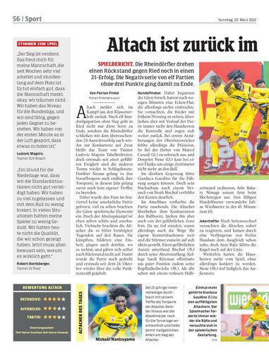 Spielbericht. Die Rheindörfler drehen einen Rückstand gegen Ried noch in einen 2:1-Erfolg. Die Negativserie von elf Partien ohne drei Punkte ging damit zu Ende.
