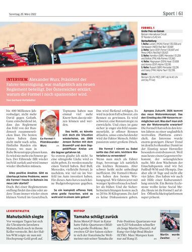 Alexander Wurz, Präsident der Fahrer-Vereinigung, war maßgeblich am neuen Reglement beteiligt. Der Österreicher erklärt, warum die Formel 1 noch spannender wird. Von Gerhard Hofstädter