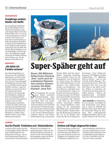 Neues, 200 Millionen Dollar teures Teleskop „Tess“ sucht nach bewohnbaren Planeten fern unseres Sonnensystems. Die NASA bejubelt „neue Ära“.