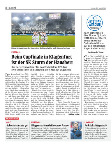 Der Kartenvorverkauf für das Endspiel im ÖFB-Cup zwischen Sturm und Salzburg am 9. Mai hat begonnen.