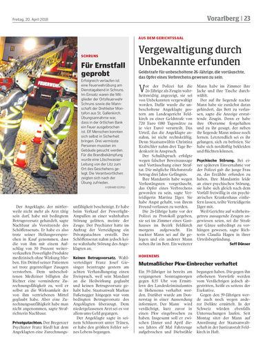 Medizinischer Gutachter und mehrere Zeugen waren am Wort. Verhandlung wurde auf 16. Mai vertagt.