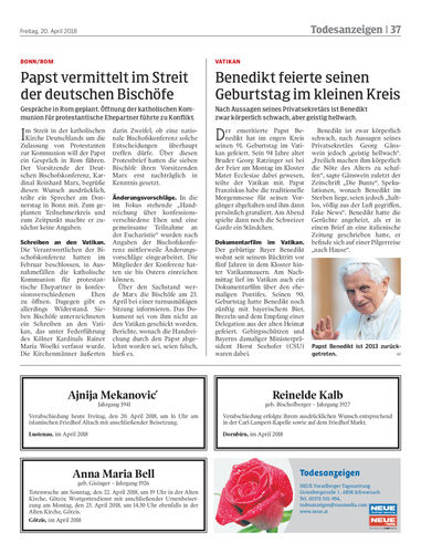 Nach Aussagen seines Privatsekretärs ist Benedikt