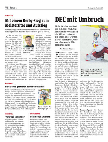 Chris D’Alvise verlässt die Bulldogs nach fünf Jahren und wechselt in die AHL zu Lustenau. Die Dornbirner wurden davon überrascht, dennoch laufen die DEC-Planungen gut.