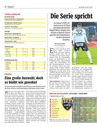 Zu Hause trifft Altach heute (17 Uhr) auf Rekordmeister Rapid Wien. Gegen das bisher stärkste Team spricht die Heimbilanz in den direkten