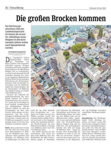 Der Rechnungsabschluss 2021 der Landeshauptstadt ist besser als erwartet. Allerdings muss Bregenz in den kommenden Jahren weiter nach Sparpotenzial suchen.
