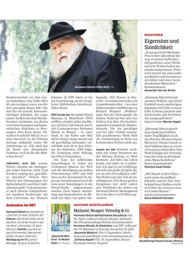 Mit dem immer wieder für große Aufregungen sorgenden Gesamtkunstwerk Orgien Mysterien Theater sicherte sich Hermann Nitsch seinen Platz in der Weltkunstgeschichte. Nun ist er im Alter von 83 Jahren gestorben.