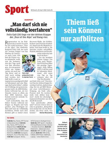 Felix Gall (24) liegt vor der dritten Etappe der „Tour of the Alps“ auf Rang vier.