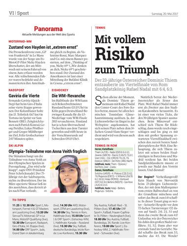 Der 23-jährige Österreicher Dominic Thiem entzauberte im Viertelfinale von Rom Sandplatzkönig Rafael Nadal mit 6:4, 6:3.