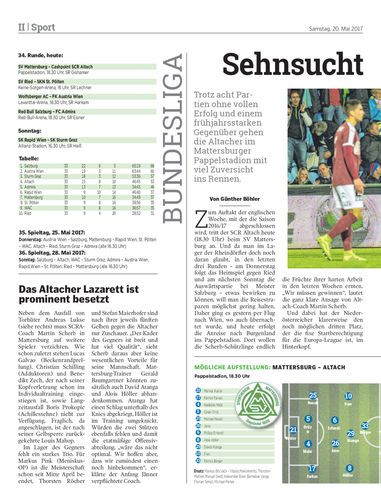 Trotz acht Partien ohne vollen Erfolg und einem frühjahrsstarken Gegenüber gehen die Altacher im Mattersburger Pappelstadion mit viel Zuversicht ins Rennen.