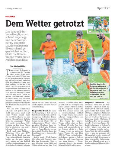 Das Topduell der Vorarlbergliga zwischen Langenegg und dem Dornbirner SV endet 2:2. Da Alberschwende überraschend gegen Höchst verliert, bleibt die Reiner-Truppe weiter erster Aufstiegskandidat.