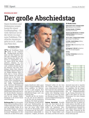 Vor 1900 Zuschauern besiegte Austria Lustenau im Reichshofstadion den SC Wiener Neustadt mit 2:0. Das Spiel stand im Zeichen des Abschieds.