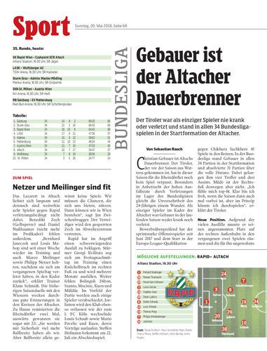 Der Tiroler war als einziger Spieler nie krank oder verletzt und stand in allen 34 Bundesligaspielen in der Startformation der Altacher.
