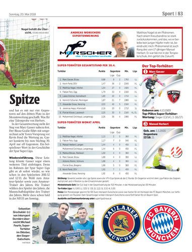 Marc Gasser steht vor dem zweiten Gewinn der Super-Torhüterwertung nach 2013/14. Der Monatssieg April geht nach Höchst.