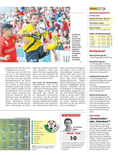 Im Showdown trifft der SCR Altach heute in der Cashpoint-Arena (19 Uhr) auf die WSG Tirol. Dass die Gäste am Montag ihr Europa-Cup-Play-off bestreiten, ist ein Vorteil für die zum Siegen verdammten Rheindörfler.