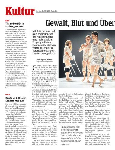 Mit „Lüg mich an und spiel mit mir“ zeigt das Aktionstheater einen sehr direkten Umgang mit dem Ukrainekrieg. Gestern wurde das Stück im Vorarlberger Landestheater uraufgeführt.