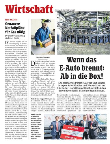 Saubermacher, Porsche Austria und Denzel bringen Auto-Händler und Werkstätten ins E-Zeitalter – samt Quarantänebox für E-Autos, deren Batterien in Brand geraten könnten.
