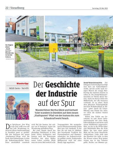 Wanderführer Hertha Glück und Gerhard Vylet wandern in Dornbirn auf dem neuen „Stadtspuren“-Pfad von der Inatura bis zum Schaukraftwerk Forach.