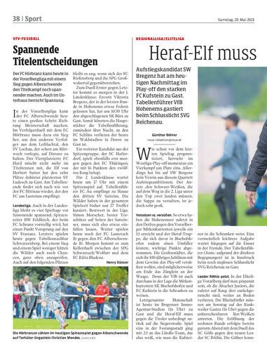 Der FC Hörbranz kann heute in der Vorarlbergliga mit einem Sieg gegen Alberschwende den Titelkampf noch spannender machen. Auch im Unterhaus herrscht Spannung.