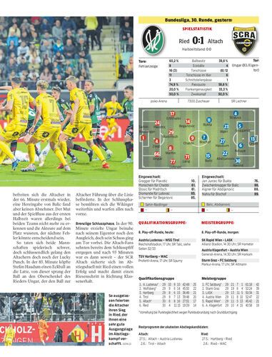 Spielbericht. Im wohl entscheidenden Spiel um den Klassenerhalt in der Bundesliga feierte der SCR Altach einen 1:0-Erfolg bei der SV Ried. Die Entscheidung brachte dabei ein spätes Eigentor.