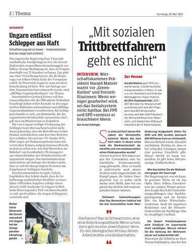 Wirtschaftskammer-Präsident Harald Mahrer warnt vor „Green- flation“ und Freizeit-Illusionen: Wenn weniger gearbeitet wird, sei das Sozialsystem nicht haltbar. Bei FPÖ und SPÖ vermisst er brauchbare Ideen. Von Ernst Sittinger